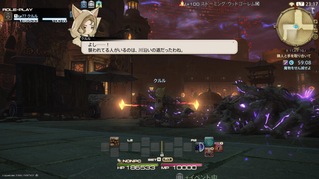 超大型魔物と戦っている間、クルルサイドも戦っていたようで、ククルを操作できて、敵を倒すことができました。